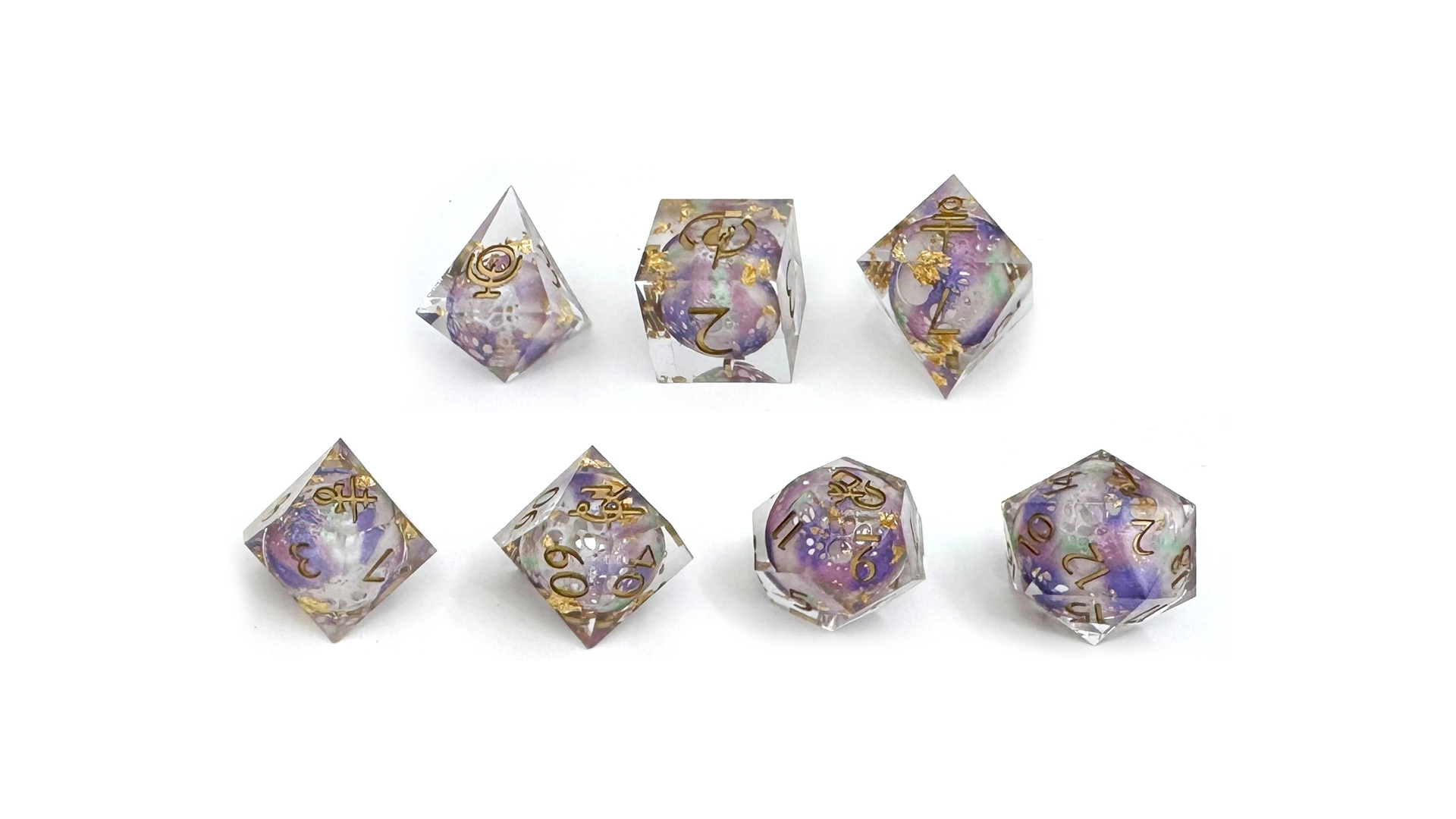 7 "Anomaly" Resin Dice with Plastic Orbs and Gold Flakes